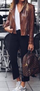 40+ fall women leather jacket outfit ideas