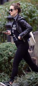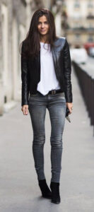 Besides, pairing a casual t-shirt with your trendy leather jacket can lead you to appear excellent. You can put on your favorite graphic T-shirt or printed tee with a jacket over it. Blue fade jeans or leggings along with black boots will seem remarkably cool with this.