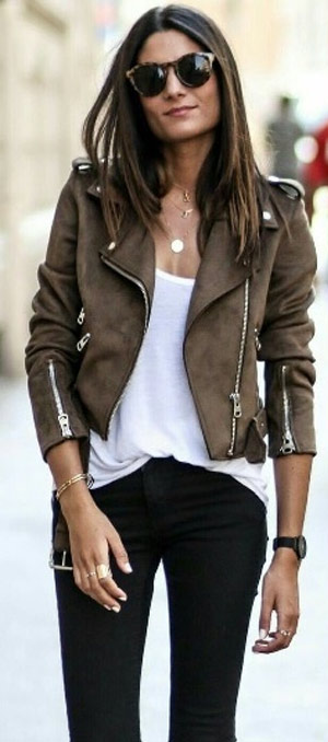 Besides, pairing a casual t-shirt with your trendy leather jacket can lead you to appear excellent. You can put on your favorite graphic T-shirt or printed tee with a jacket over it. Blue fade jeans or leggings along with black boots will seem remarkably cool with this.
