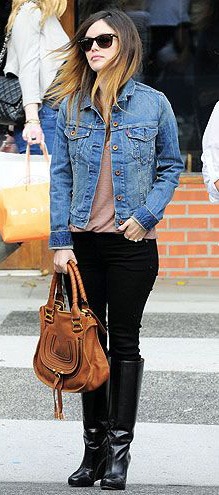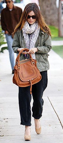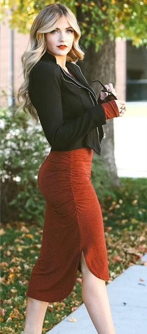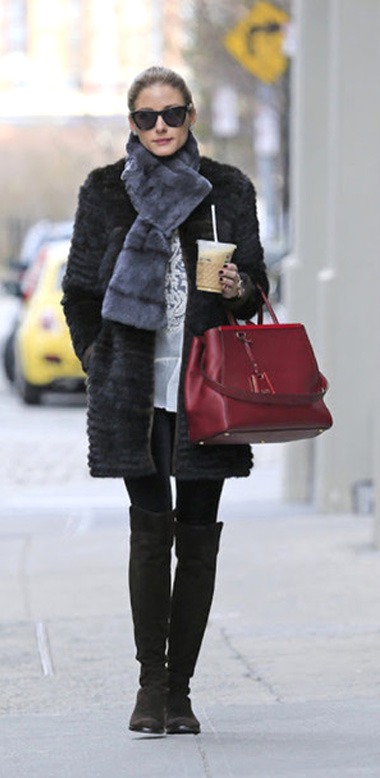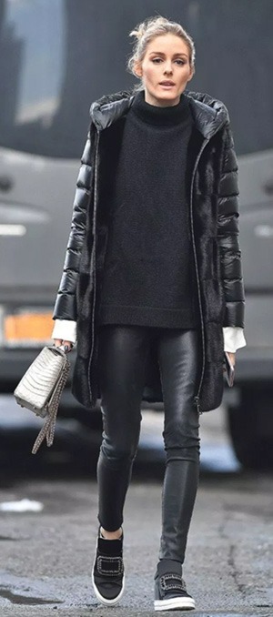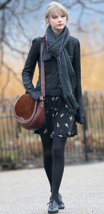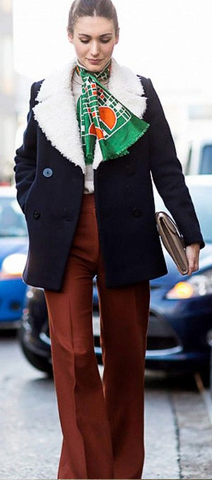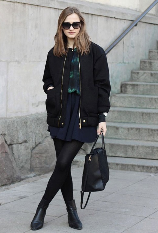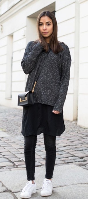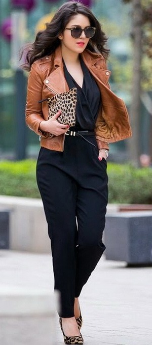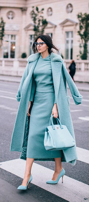 A stylish dress without any prints can also be a chic selection. Wear a midi length high necked dress with a belt at waist. A body skinning cut will be preferable. The addition of a casual leather bag plus a pair of black high heels will make this outfit sleeker.