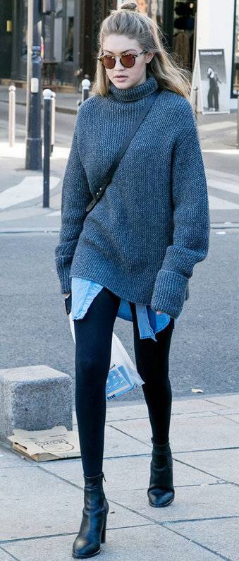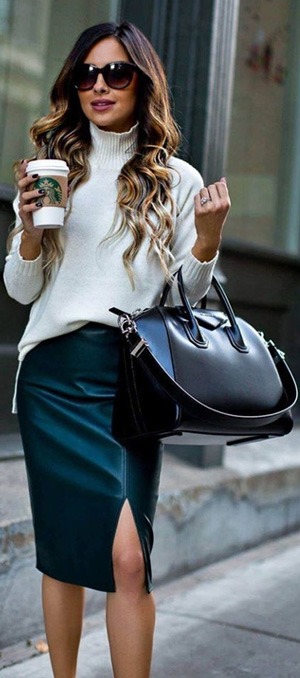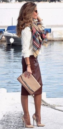 Also you can wear a boyfriend Style sweater and leather trouser – this combination is really casual and comfy, definitely will follow the latest styling trend. A perfect combo of brownish boyfriend style sweater together with a leather trouser of similar shade will undoubtedly look great on you. No extra effort is needed to dress up and keeps you cozy on winter days at work.
