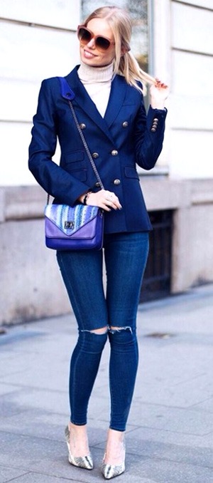 Besides, Blazers have always been a suitable office wear. Belted blazer will create a feminine style. The Slim fitting jeans and flat shoes will enhance the look and provide comfort at winter, both comfy and casual outfit for stylish working women. You also can choose ideas from followings –
