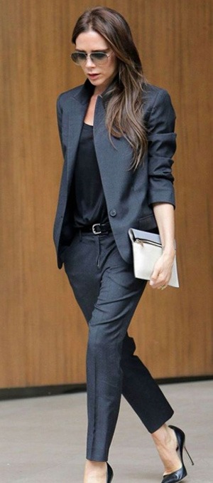 Perfect office wear for winter, easy to carry and gives necessary warmth and coziness. Any style like solid colors, striped or patterned designs will go with the latest trend. You can put on a sweater or t-shirt inside your suit. A pair of leather loafers will look great with the pantsuit.