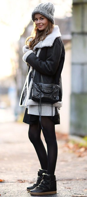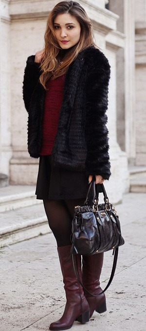 You can wear Sweater Paired with Skirt and Boots, a skirt with floral prints on them, bright colors will make your winter warm. Pick a white or grey winter sweater along with boots of eye-catchy tone that needs to be a prime color of your skirt to make your look complete.