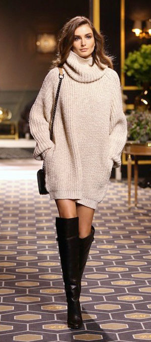 Belted tops are popular among women and you can adapt this idea to look chic with winter clothes. A large bulky sweater belted at the waist paired with sizzling high heels will look extremely stunning, a suitable attire for night parties that seems charming and comfortable.